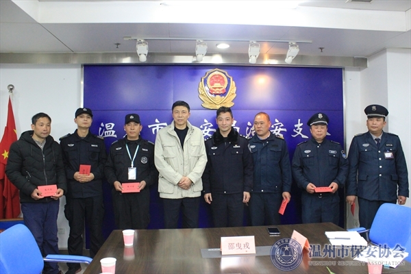 为体现对保安从业人员的关心和爱护,送去“保安之家”大家庭的温暖,在新春佳节来临之际,温州市保安协会会长邵曳戎、秘书长陈一代表协会对我公司基层一线保安员刘洪良进行年终慰问,并送上节日问候及慰问金。 1月30日上午,温州市保安协会在温州市公安局16楼会议室召开了年终保安服务工作座谈会,由协会对各公司评出的10名基层一线保安队员一同参加。会上邵曳戎会长表示,要感谢大家为温州经济社会发展作出的积极贡献,也要感谢大家在新年来临之际仍然坚持的一线工作,更要感谢大家一如既往,任劳任怨,默默无闻地坚守,值得敬佩。会后,邵曳戎会长还详细询问了我公司保安员刘洪良的家庭情况和生活近况,鼓励他要树立信心,乐观积极地面对生活。 刘洪良对领导的亲切的慰问表示衷心的感谢,并表示会继续发扬不怕苦不怕累、恪尽职守、勇于奉献的优良作风,扎扎实实做好本职工作,不辜负领导对自己的期望。