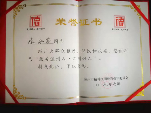 为弘扬社会文明到的新风潮,创造市民素质提升新模式,推进社会主义核心价值体系建设,我市谋划开展“发现最美温州人——温州好人榜”评选活动。经群众推荐、基层遴选、网络投票和评委会综合审议,温州市保安服务总公司候选人陈永芬成功入选2019年9月“温州好人榜”。