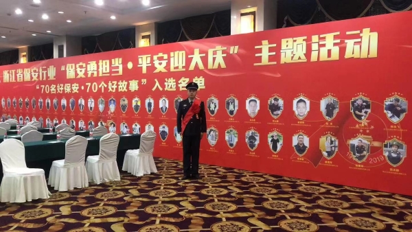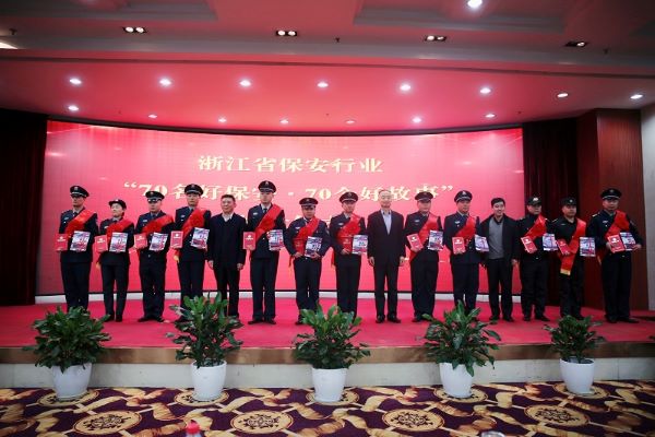 12月19日上午,浙江省保安协第八届理事会第二次会议在杭州召开。为表彰先进,大会特举行“70名好保安·70个好故事”授发仪式,仪式上播放了《70名好保安·70个好故事》宣传片,省保安协会会长何建军、浙江省社会组织总会会长梁星心、省公安厅党委委员、副厅长金伯中分别作重要讲话,并为12名保安员代表颁发了荣誉证书和文集。温州市保安服务总公司保安员潘进波,陈永芬,宋仲明三名保安员入选浙江省保安行业“70名好保安·70个好故事”主题征集活动名单,其中潘进波还作为先进代表赴省协会领奖。