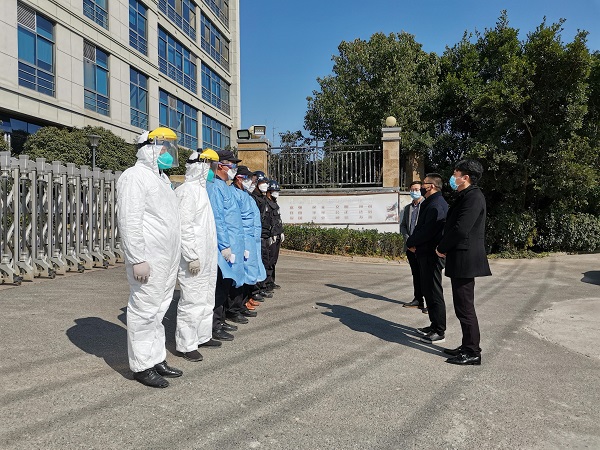 新型冠状病毒仍处于疫情防控的关键时期,温州保总一线保安员日夜奋战在抗疫第一线,他们的坚强值守令人敬佩,同时他们的安危也牵挂着领导的心。2月20日,浙江安防职业技术学院党委委员温剑峰、学工部部长(兼温州保总党支部书记)陈体令、温州保总总经理林川江一行分赴温州市第六人民医院、温州肯恩大学等单位看望奋战在一线的保安员,向他们致以亲切的问候,致敬一线队员们在抗疫期间坚守岗位、无私奉献的精神。