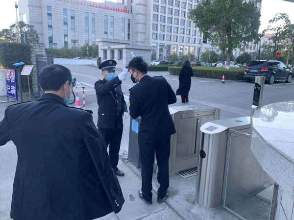 “体温正常,进吧。”王鸿作为温州保总驻龙湾区行政管理中心安保人员,在疫情期间,他每天要这样重复机械式地给近700人测量体温。