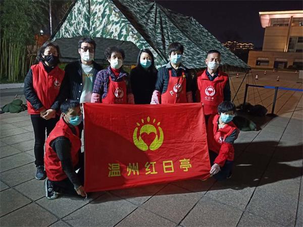 温州红日亭义工是一群自发组织的抗疫逆行者,看到了奋斗在一线的保安战士,他们也想以自己的方式助力抗“疫”一线。红日亭的爱心义士每天从起早贪黑,忙到深夜,做好百份的爱心餐,开出两辆面包车,将爱心餐送到防疫执勤点和卡口的工作人员手里,为他们送去香喷喷的早饭,热腾腾的宵夜。坚持至今,风雨无阻。 红日亭的爱心举动极大的激励了队员们的士气,为将这份精神和爱心传递下去,温州保总驻市行政中心保安大队踊跃地向红日亭发起爱心捐款。在大队领导的带头下,队员自愿捐款,于3月25日,共60名队员完成线上线下捐款,捐款总额2100元,于当晚送到红日亭义工的手里。 虽然捐款金额不高,但都包含着温州保总队员们的心意。3月28日,红日亭为温州保总的爱心捐赠赠送锦旗,锦旗上写着“全民抗疫、爱心接力”。队员们表示这是应该做的,在灾难面前,众志成城,守望相助,我们必将共渡难关。