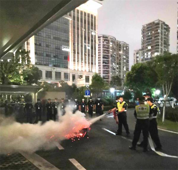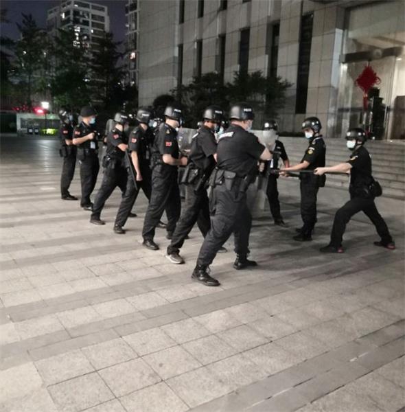 “巩固安全,筑牢防线” 为了巩固各项安全和反恐防范措施,提高队员心理素质及紧急事件处理能力。同时开展反恐防暴应急事件演练。巩固练习了钢叉、盾牌等防爆工具使用之后,两名保安员扮演暴徒按照预设的情景进行演练,剩余队员发现暴徒威胁安全,对暴徒形成包围性压制,迅速将其制服,并立刻通报警戒,对事发区域实施管控。 此次反恐防暴应急演练充分展示了温州保总保安员处置突发事件的能力,累积了实战经验,增强了防暴处突能力,为维护大院安全稳定提供了有力保障。温州保总驻市公安局科技大楼保安队队长表示,接下来的工作中会继续认真做好安保和反恐工作,切实提高队员对反恐防暴能力建设的紧迫性认识,加强保安员的防范意识和应急处理技能。