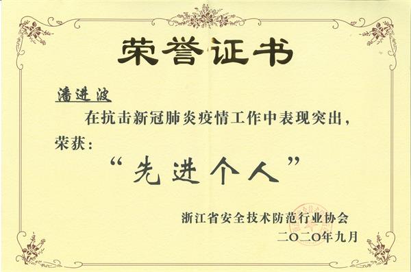 自新冠肺炎疫情发生以来,党中央将疫情防控作为头等大事来抓,开启了一场疫情防控的人民战争、总体战、阻击战,并取得了阶段性成果。浙江省安全技术防范行业协会开展浙江安防行业抗击新冠肺炎疫情先进集体和个人的评选工作,以表彰表现突出的会员单位及个人,并于9月11日,2020中国(杭州)数字安防生态大会上举行了颁奖仪式。温州市保安服务总公司荣获抗击疫情先进集体”称号,同时授予公司潘进波同志“抗击疫情先进个人奖”。