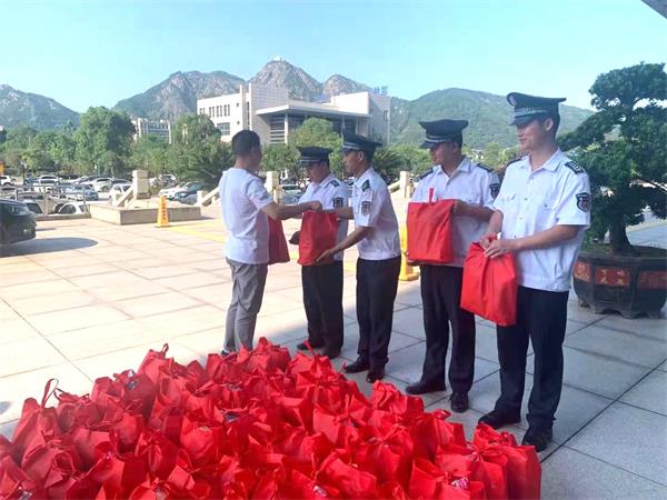 同时携带夏令用品前往温州保总驻永嘉金溪水库物业部开展慰问,组织全体员工开展岗位职责培训,进一步明确岗位责任规范。 温州保总郭君总助分赴温州市公安局科技大楼、温州市公安局2号楼,生态园管委会等地开展送清凉慰问活动。 温州保总中心大队大队长徐银龙分赴温州大学,温州肯恩大学,温州市财政局进行夏日慰问,向奋战在一线的保安员们送去了防暑降温等夏令物品,并捎上了公司领导深切的关怀。