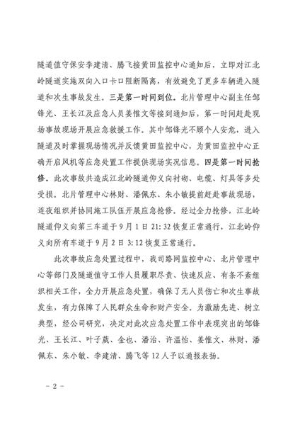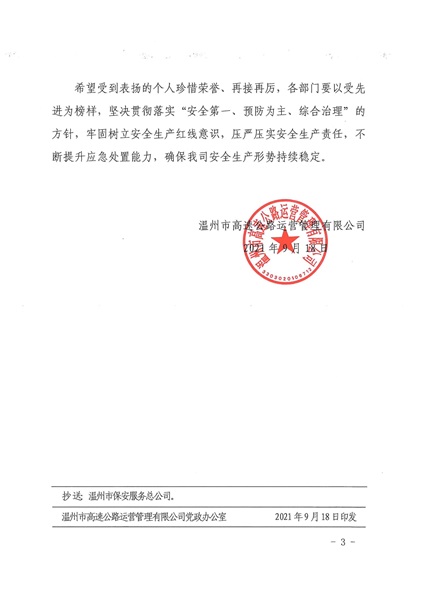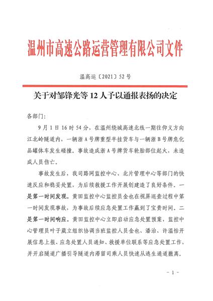 | 【表扬台】温州保总高速隧道值守队员收到一份表扬通报 | |||