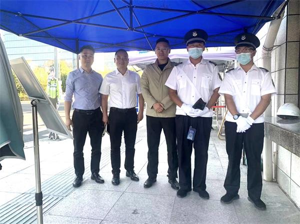 紧接着开展行政大院走访。盛冰一行至微型消防站、消控室、保安岗亭等实地走访,详细了解掌握大院内各岗位的安保日常管理、消防安全防范措施、疫情防控落实等情况,队员执勤排班、安全防范、工作状态等情况。其次重点对大院内消防、人员流动、车辆进出等安全方面进行了安全检查指导。盛冰表示,全体队员要压紧压实各方责任,坚决克服一切困难、战胜一切险阻,脚踏实地抓好各项工作,全力以赴做好安全服务工作,营造良好行政大院环境,为党的二十大胜利召开贡献一份力量。