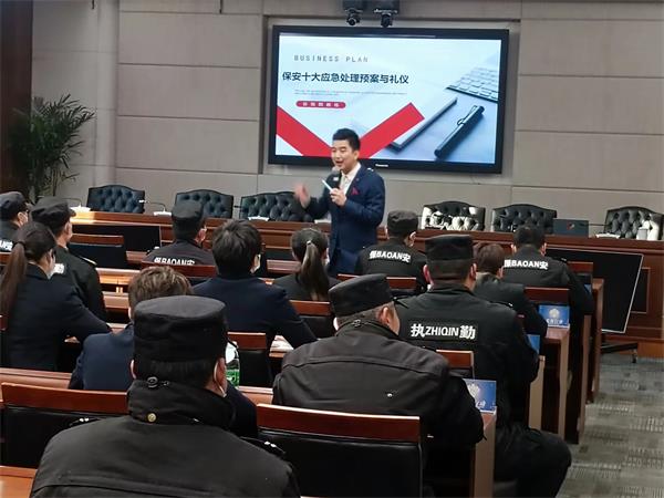 为提高队伍综合实力,有序开展各类工作,进一步提高保安队伍执勤及防范水平,优化品牌服务,3月5日下午,e77乐彩驻市公安局科技大楼保安队开展保安十大应急处理预案与礼仪课程培训大会。大会特邀请了国家二级心理咨询师谷祖熙教练为大家进行授课。 此次培训运用讲授、案例分析、交流研讨等教学方法,首先对保安十大应急处预案展开系统全面的讲解分析,从实际工作层面出发剖解了应急预案体系建设、应急预案编制、应急预案管理、应急演练等相关知识。其次深入浅出地讲解了安保工作人员表着装、交往举止、工作接待、沟通礼仪、文明服务等基本常识,强调无论是在为民服务中还是社会交往中,要时时处处讲究礼仪、规范言行、注意形象,让文明礼仪成为行为自觉。
