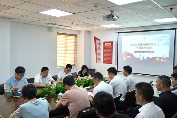凝聚新力量 ,接力再奋进。6月27日上午,温州市安保集团召开干部任命大会。浙江安防职业技术学院党委委员、温州浙安院资产经营有限公司党总支书记、董事长:温剑峰,温州浙安院资产经营有限公司党总支副书记、总经理:侯晓华,温州浙安院资产经营有限公司党总支统战委员、财务总监邵开来等上级公司领导、公司全体党员、中层干部和职工代表参加会议。会议由温州安保集团党支部书记、董事长余强主持。 侯晓华代表组织宣读资产公司任命文件,林权有同志、周兆松同志、郭军同志、龚万亮同志任温州安保集团副总经理职务,杨晓静同志任温州安保集团总监职务。新任干部依次作表态发言。 侯晓华指出,公司正处于转型升级的关键阶段,需要通过不断规范的内部管理改善公司发展,同时做到提振信心,坚定公司发展目标不动摇;攻坚克难,突出发展重点,找到解决问题的发展;团结一致,凝心聚力推动公司发展。 随后,温剑峰向新任职同志表示祝贺,他指出此次干部任命,是资产公司党总支从全局出发、慎重考虑,认真研究后做出的重要决定。同时提出四点要求。第一加强学习,提升能力,新任命的同志要适应公司快速发展的形式要求,重点学习贯彻好党的二十大精神,不断增强政治意识、大局意识、责任意识。第二团结协作,凝聚合力,要自觉以健全的制度保障团结,发扬民主,以良好的品格增进团结,坚持依靠广大干部职工,促进班子团结和谐,促进企业健康发展。第三改进作风,树立良好形象,班子成员要增强政治意识,严格遵守和执行各项纪律,善于从全局的角度来观察和处理问题,坚持清正廉洁,自觉做到执政为民第四扎实工作,奋发有为,坚决反对因循守旧、不思进取、无所作为,大胆工作、勇挑重担,增强工作主动性和积极性,始终保持与时俱进、奋勇争先的精神状态,团结带领公司员工走好公司发展每一步。 最后,余强再次对新任干部表示欢迎,他希望各位新任命干部在今后工作中坚决拥护安防学院决定,同心协力把温州市安保集团做大做强。二是持续推进规范化管理为安保集团营造奋进向上的工作氛围和环境。三是领导干部发挥领头雁作用带领全体员工敢于迎难而上,攻坚破难,切实让e77乐彩又好又快地发展。