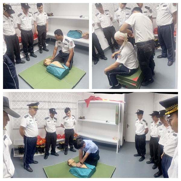 四、强化防范意识,开展“实景”演练 大队根据实际情况,结合重点区域应对突发事件,组织群体上访、火警处置、防恐防爆、消防器材使用等情况开展实战化应急演练培训。