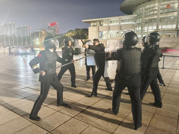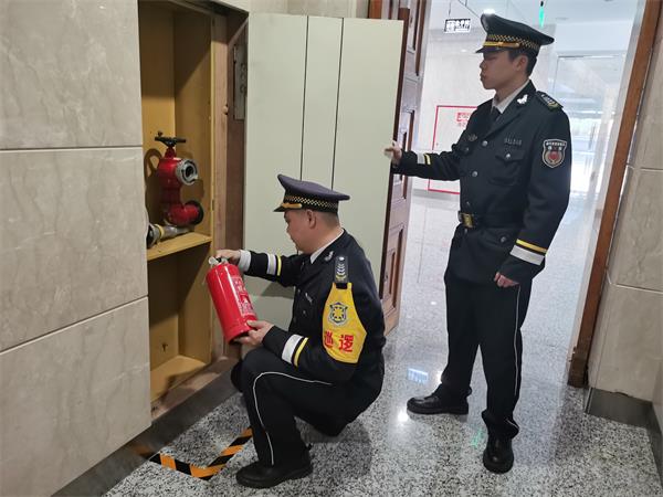 演习模拟暴恐分子在市行政中心进行伤人事件、模拟指定区域着火、模拟如何疏散参会人员等,对存在威胁以及影响安全的各种情况进行预演。演练进一步强化了市府大队的处突能力,为两会安保筑起了坚实的屏障。 三、消防排查到位,筑牢安全防线 “两会”开幕前,温州市消防救援支队对重点单位场所大会堂,进行“两会”会前消防安保工作检查。市府大队全力配合支队监督员实地开展各项安全检查和风险排查,落实消防安全责任,确认重点部位值班人员工作规范。同时大队不断加强人防、物防、技防措施,开展全方位、无死角的火灾隐患大排查,消除各类不安全、不稳定因素与安全隐患:规范电气线路的敷设操作、检查消防设施是否完好有效,全面完成会议消防安全和风险排查工作,并开展消防演练,为“两会”顺利举办保驾护航。