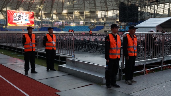 全员恪尽职守 一路保驾护航 在前一晚2024年中国足协杯决赛的安保工作圆满结束后,市安保集团人迅速调整状态,翌日全体队员提早6小时集中场地,各执勤区和安检点定人、定岗、定责。全体安保人员始终保持高度警惕,确保观众通道、演出通道畅通,指挥演员及观众安全有序进场退场。对靠近安全护栏、拥挤推搡等影响安全现象及时发现劝导制止,着力维护演唱会现场秩序,严防发生拥挤踩踏事故发生,确保演出安全。