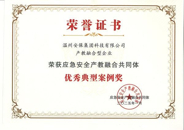 其中,温州安保集团科技有限公司作为产教融合型企业,荣获应急安全产教融合共同体“优秀典型案例奖”。
