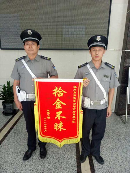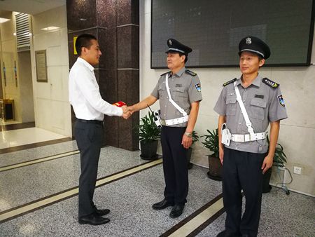 连日来,温州市保安服务总公司保安员黄磊和李训帮拾金不昧、助人为乐的事迹连续被多家媒体报道,他们这种品德高尚的行为赢得了社会赞誉和认可。为表彰和弘扬先进,10月24日下午,温州市保安服务总公司林川江总经理为两位保安员颁发了荣誉证书和奖金,并进行通报表扬,同时号召公司全员积极向他学习,传承、弘扬社会正气,传递好正能量。 第二天,阿婆在家属的陪同下,给李训帮班长送来了一封感谢信。阿婆今年91岁,表示还好李训帮扶了她一把,不然一把年纪不经摔,特意送上感谢信表达谢意。 2017年10月13日下午五点左右,住建委办事大厅来往办事人员络绎不绝,黄磊像往常一样在大厅巡查,当他巡至42号窗口附近时,发现最后一排等候区椅靠座位上有个黑色男士布包,而周围不见主人寻找。在旁等待了7、8分钟,还是无人来寻,黄磊马上将情况汇报给李训帮班长,收到班长指示将遗失物放置监控室暂时保管。出于安全起见,李训帮班长查看包裹内物品,发现内装现金12. 8万元,银行卡12张及钱包等贵重物品。保安队将情况立即上报大队部。过了5分钟左右,有名男子带着两名老人四处查看寻找并询问人员,有无看到一个提包。经队员核实后,李训帮将钱款交还给该男子一家。 据了解失主名叫朱鹏飞,当天下午他带他父母来办事大厅办理房产过户手续,同行有3人,但都围在办事窗口,将手提包遗忘在座位上,而这笔钱是给父亲看病用的,要是丢失真不知如何是好。朱先生寻回钱后非常感动,深感幸运,赞叹保安有如此拾金不昧的精神难得可贵,并赠送锦旗以表谢意。 黄磊和李训帮两位队员自参加工作以来,尽职尽责、热情服务,不仅体现了一名保安员应有的职业素养,还表现出全心全意为人民服务的高尚情操,树立了公司新时代保安的良好形象。林川江总经理希望广大员工要以他们为榜样,将热情服务、助人为乐、拾金不昧的精神发扬光大,努力做好各项保安服务工作,用实际行动为构建和谐社会做出应有的贡献。 |