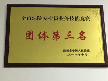 10月13日,温州市保安服务总公司驻鹿城法院保安队参加了温州市法院安检员业务技能竞赛,队员们凭着过硬的业务技能和敢于拼搏、勇于挑战的精神,荣获团体第三名,同时保安员叶林在众多参赛强手中脱颖而出,荣获个人第三名的的佳绩,为公司争得了荣誉。 |