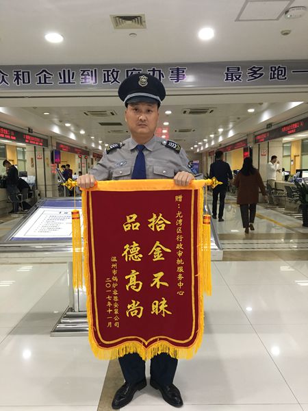 | 温州市保安服务总公司员保安拾金不昧获赞扬 | |||